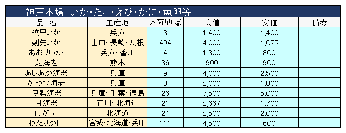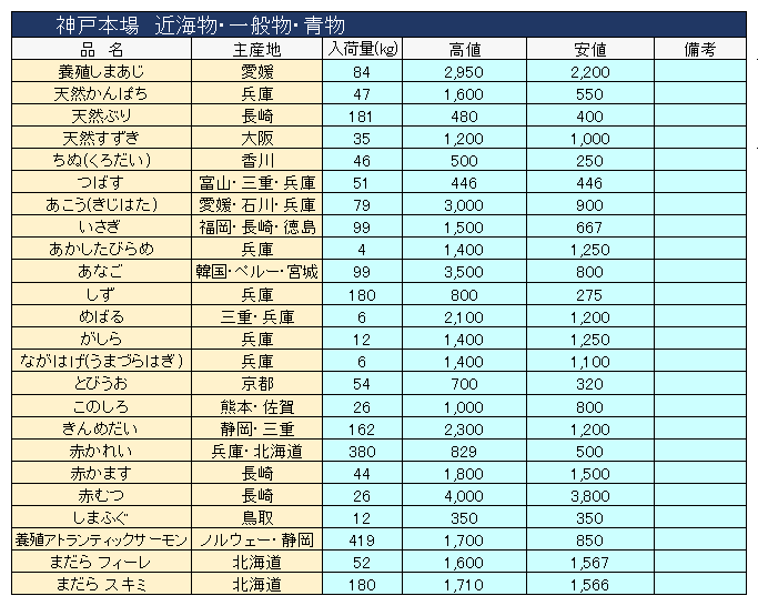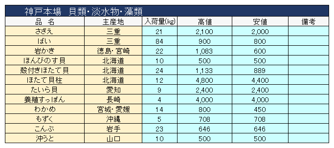 主要品目以外の市況情報です。(アガリ等は除外)