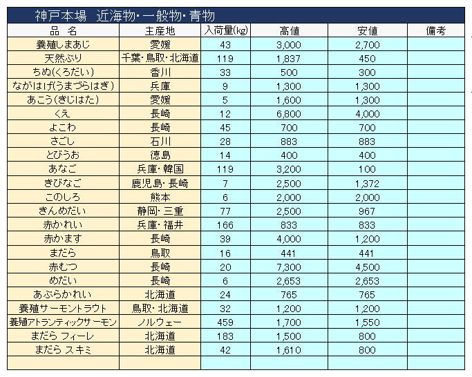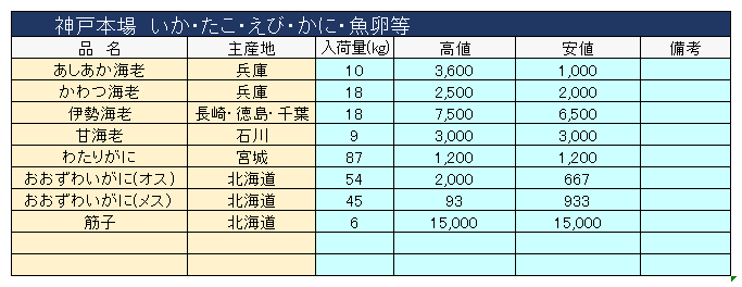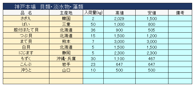主要品目以外の市況情報です。(アガリ等は除外)