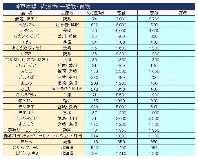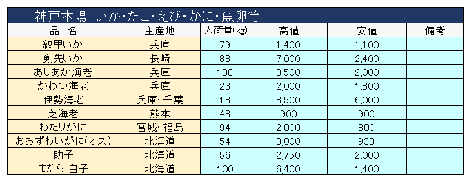 2025年11月6日 主要品目の売買取引の結果の公表(東部市場)