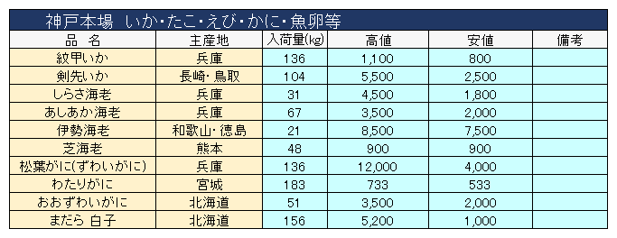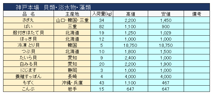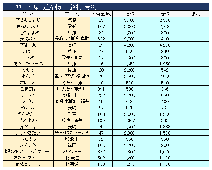 主要品目以外の市況情報です。(アガリ等は除外)