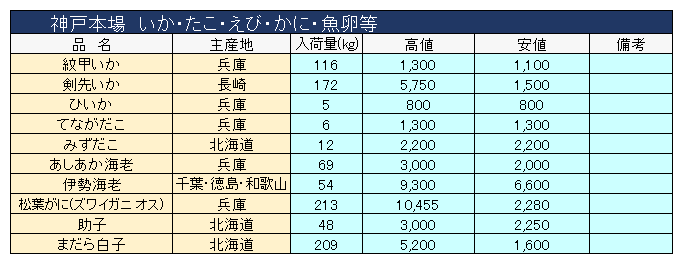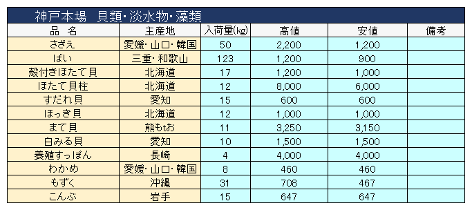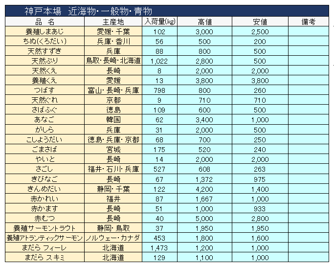 主要品目以外の市況情報です。(アガリ等は除外)