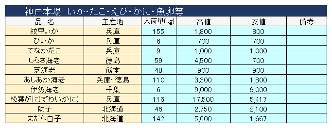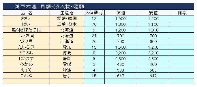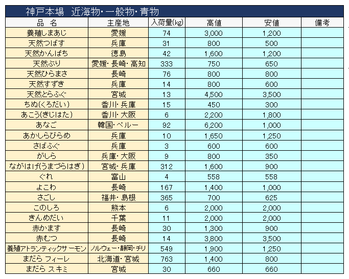 主要品目以外の市況情報です。(アガリ等は除外)