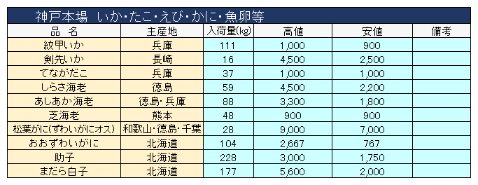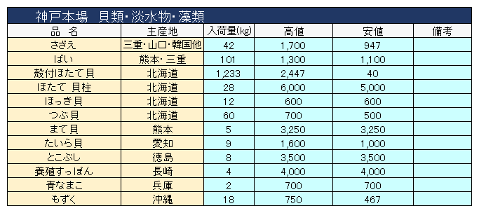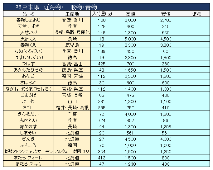 主要品目以外の市況情報です。(アガリ等は除外)
