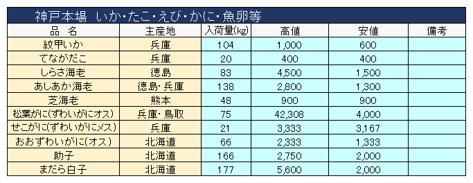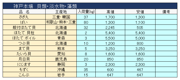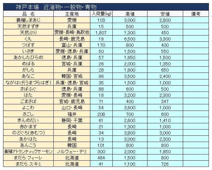 主要品目以外の市況情報です。(アガリ等は除外)