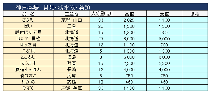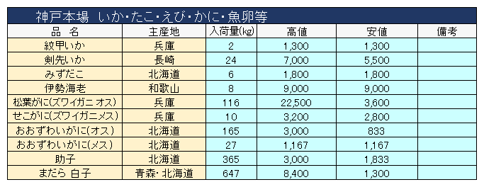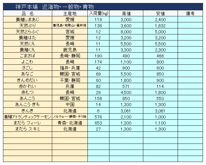 主要品目以外の市況情報です。(アガリ等は除外)