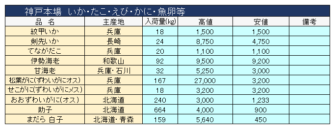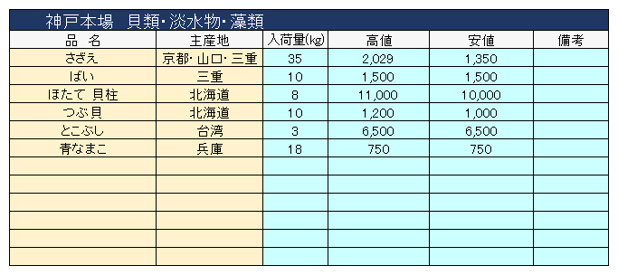 主要品目以外の市況情報です。(アガリ等は除外)