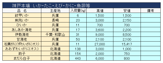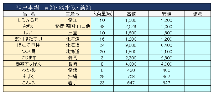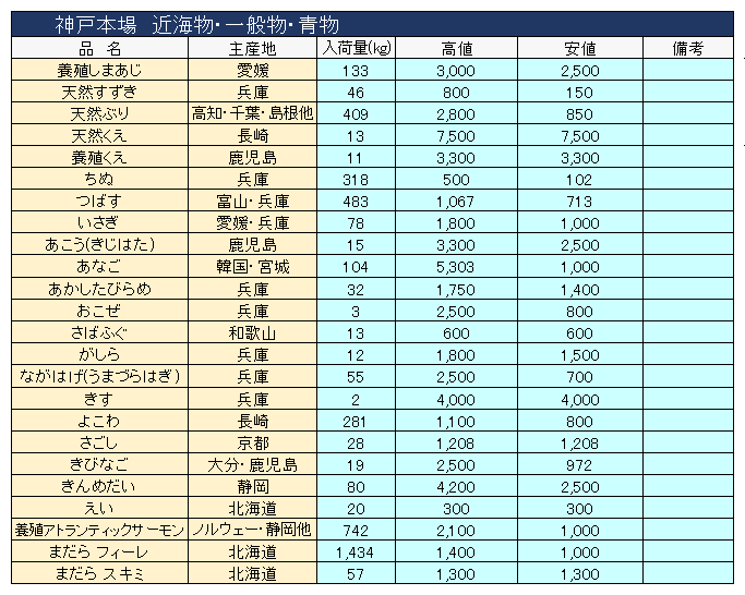 主要品目以外の市況情報です。(アガリ等は除外)