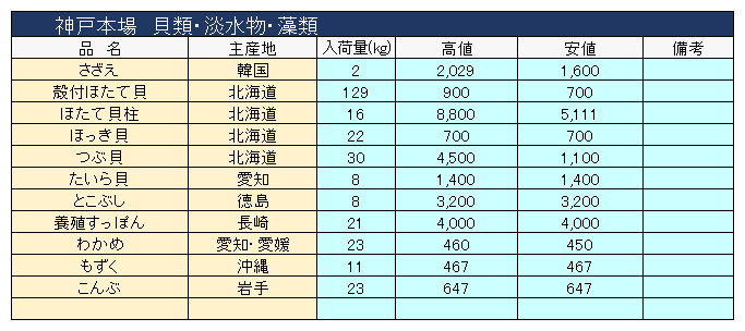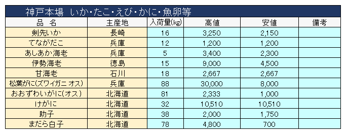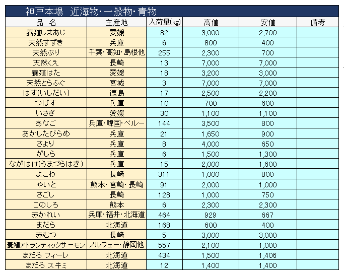 主要品目以外の市況情報です。(アガリ等は除外)