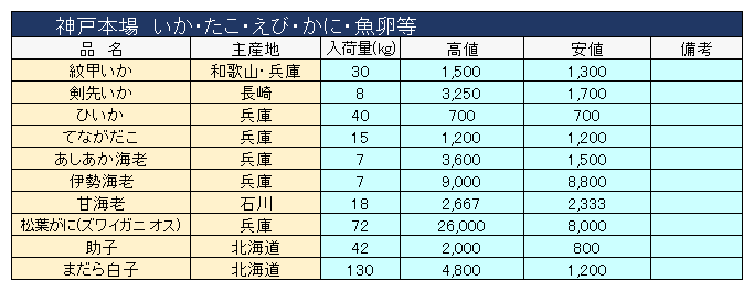 2026年1月20日 主要品目の売買取引の結果の公表(東部市場)