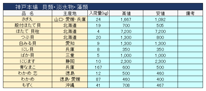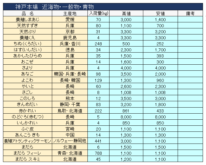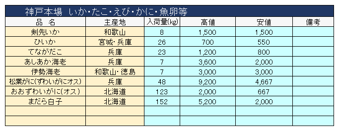主要品目以外の市況情報です。(アガリ等は除外)
