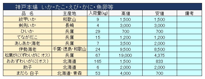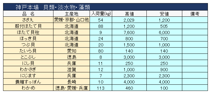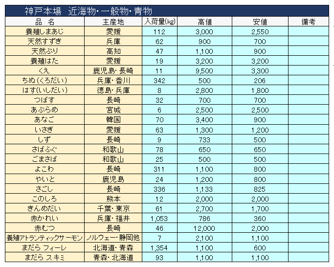 主要品目以外の市況情報です。(アガリ等は除外)