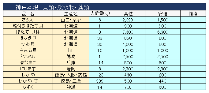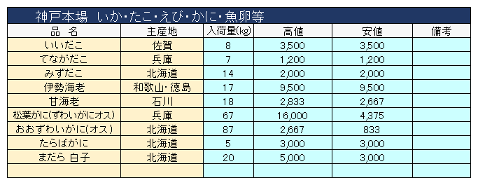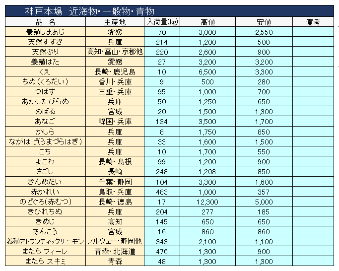 主要品目以外の市況情報です。(アガリ等は除外)