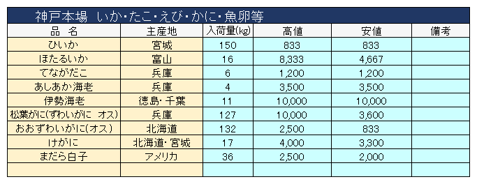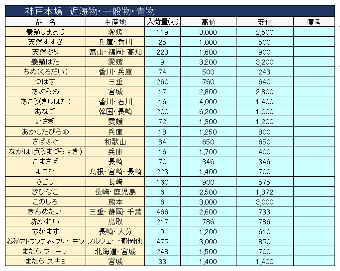 主要品目以外の市況情報です。(アガリ等は除外)