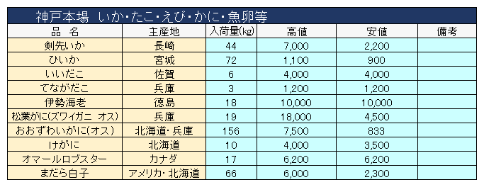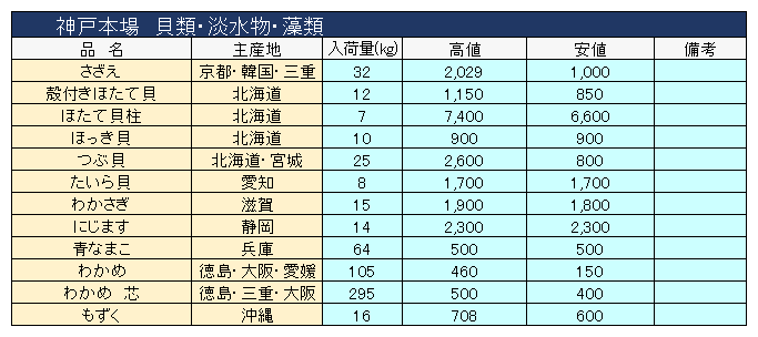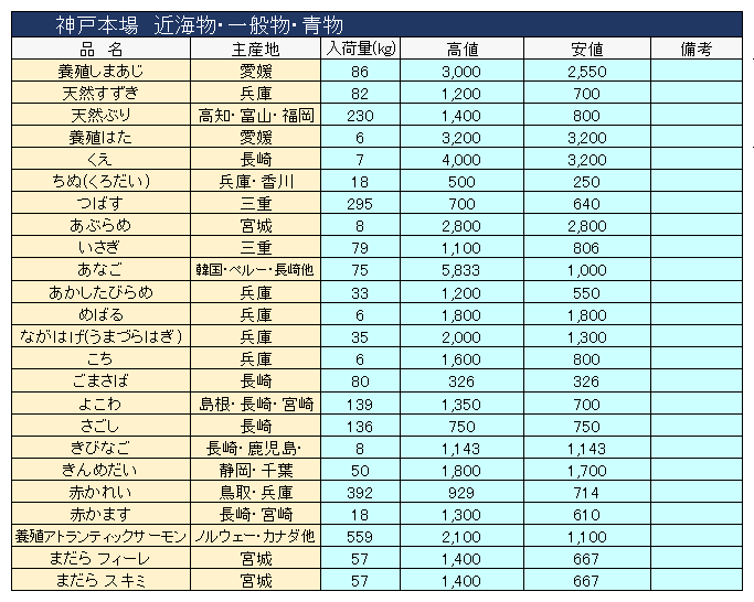 主要品目以外の市況情報です。(アガリ等は除外)