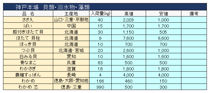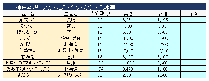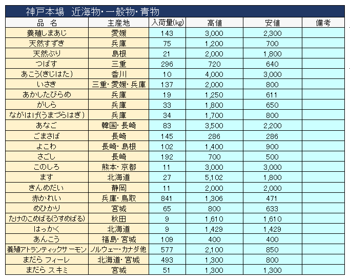 主要品目以外の市況情報です。(アガリ等は除外)