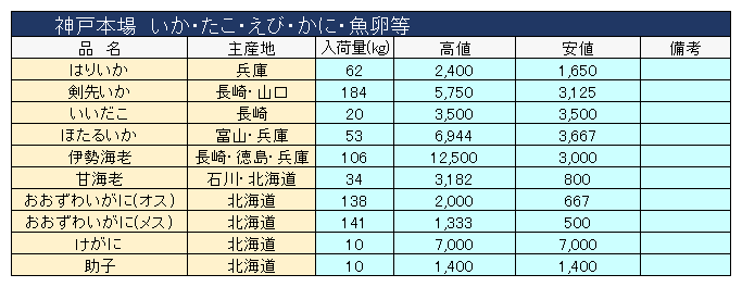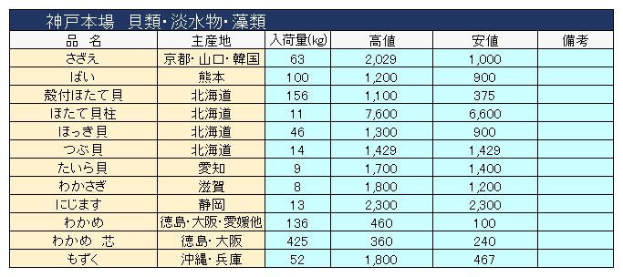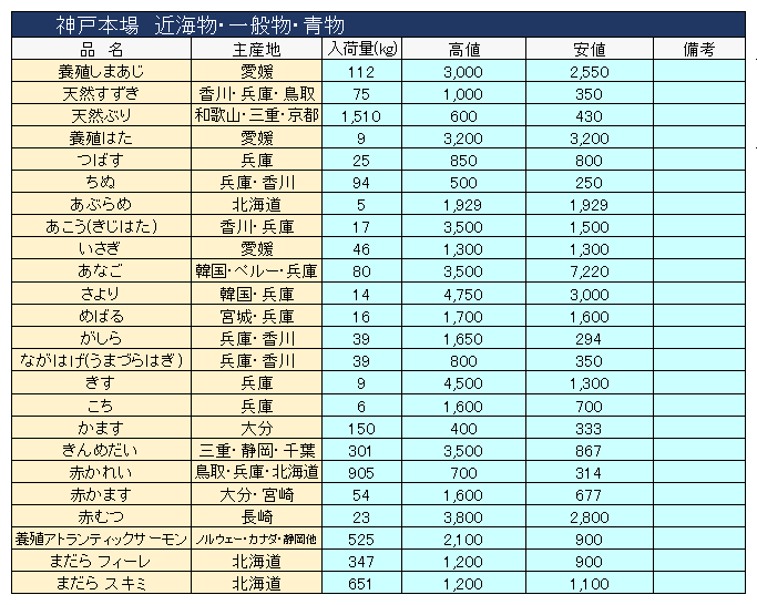 主要品目以外の市況情報です。(アガリ等は除外)