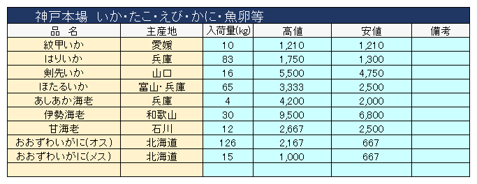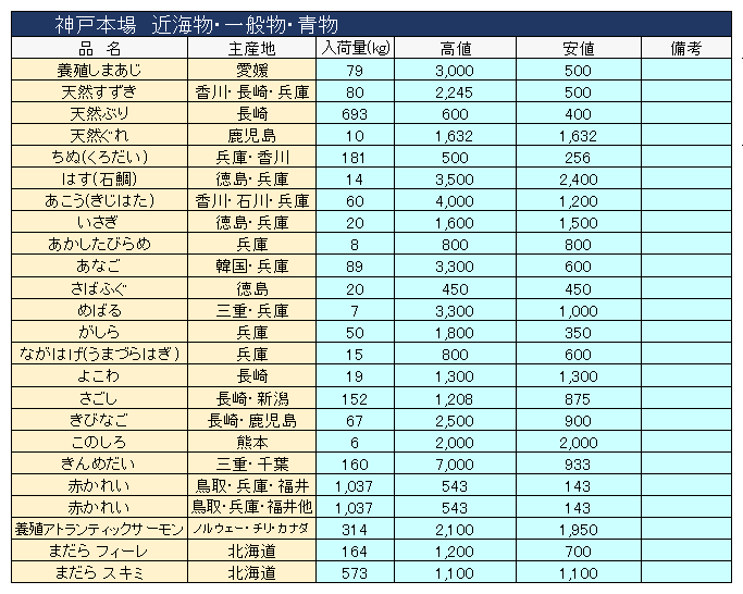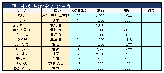 主要品目以外の市況情報です。(アガリ等は除外)