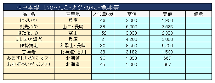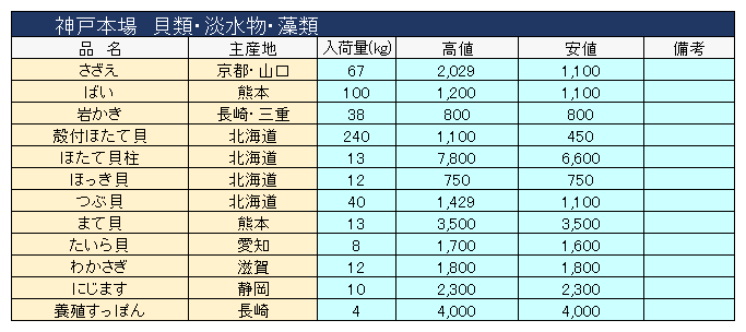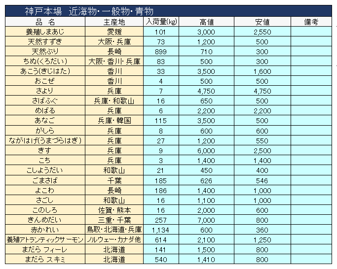 主要品目以外の市況情報です。(アガリ等は除外)