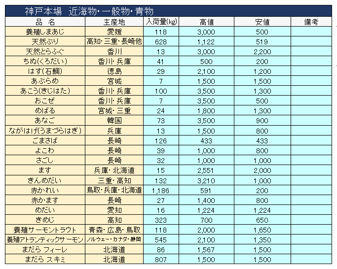 主要品目以外の市況情報です。(アガリ等は除外)