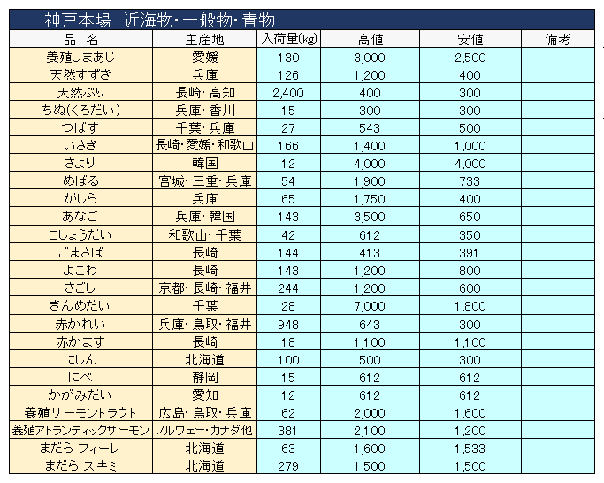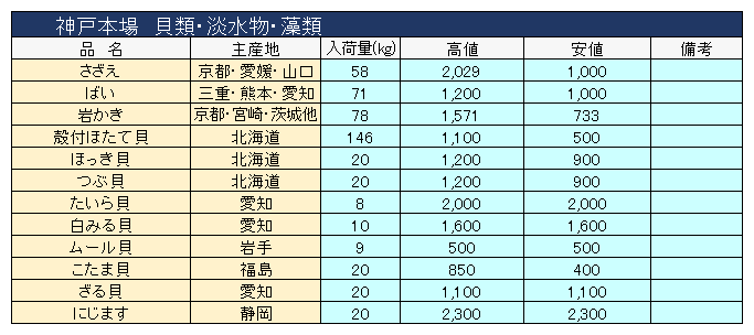 主要品目以外の市況情報です。(アガリ等は除外)