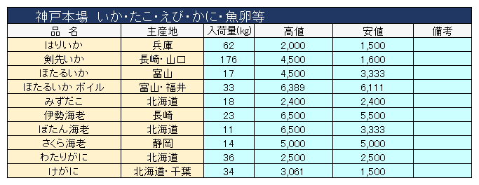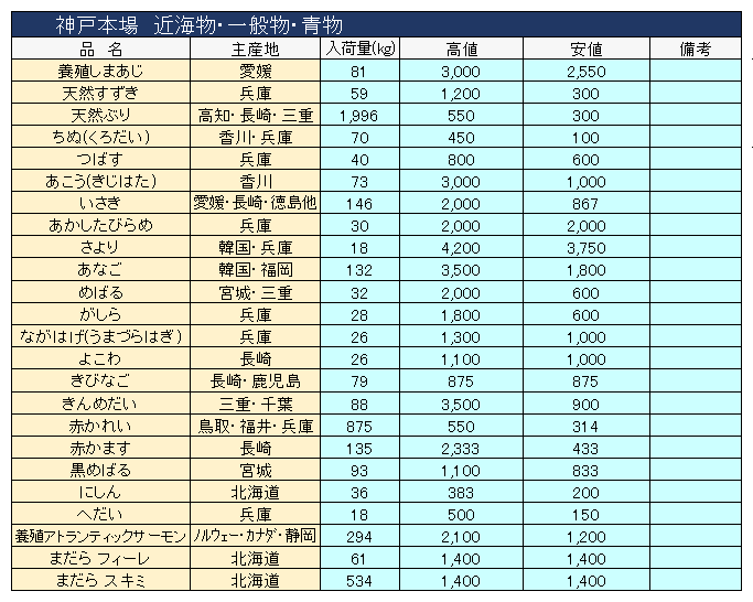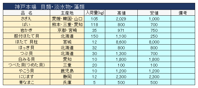 主要品目以外の市況情報です。(アガリ等は除外)